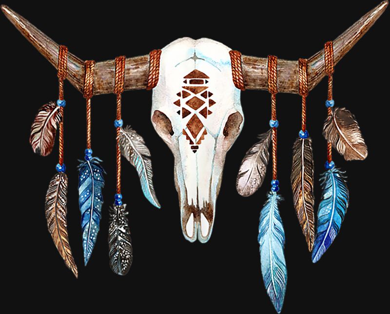 Beautiful Cow Skull With Indian Feathers Boho Art Tank Top