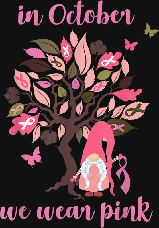 In October We Wear Pink Breast Cancer Awareness Gnome Tree T Shirt