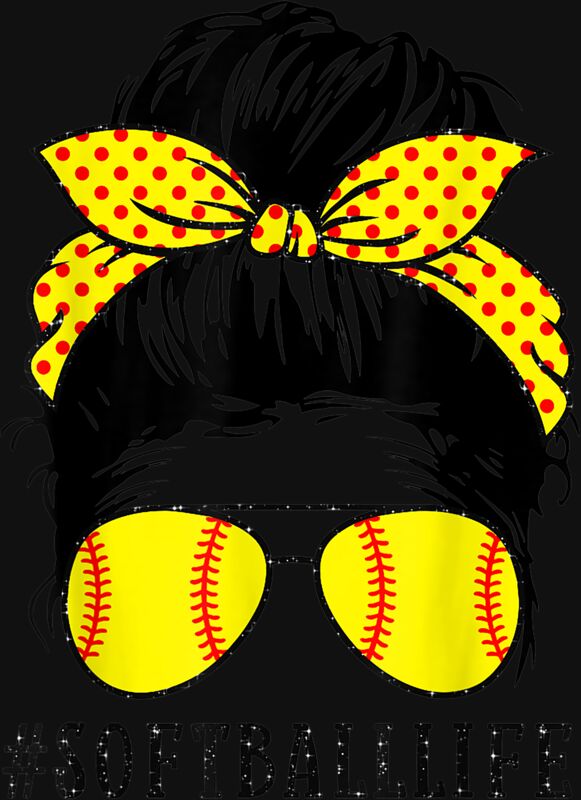 Mom Life Softball Baseball Mom Mothers Day Messy Bun Womens T Shirt