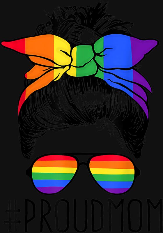 Proud Mom Messy Hair Bun LGBTQ Rainbow Flag LGBT Pride Ally T Shirt