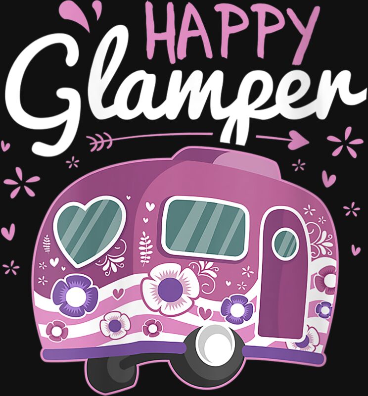 Womens Happy Glamper Caravan Camping Glamping Gear Gift V Neck T Shirt